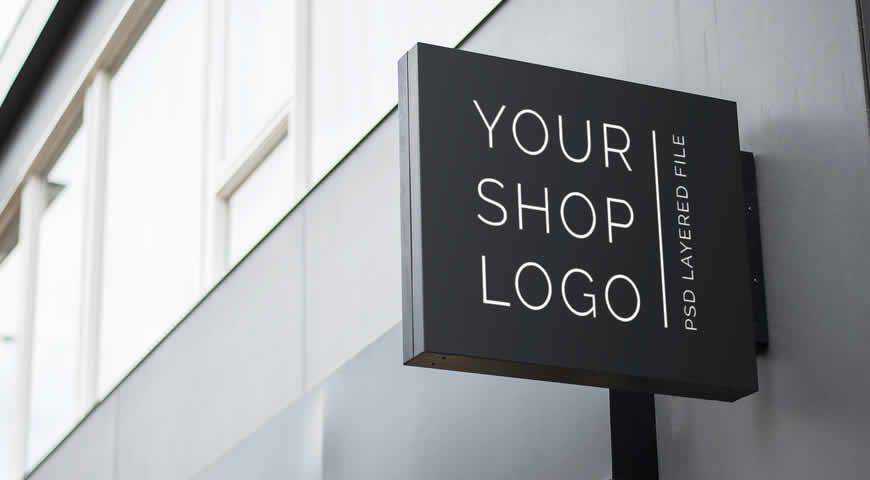 Hanging wall sign mockup #5. The best logo mockup to present your wall sign design in a photorealistic style. When it comes to branding your small business, the logo is probably the most important thing to consider. Logos are important because they represent your brand and services.