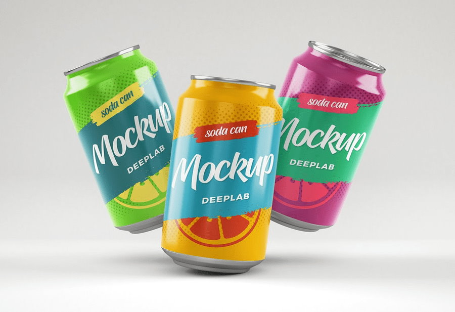 Presenting the aluminum cap psd . This soft drink can mockup is a free psd, offering three different soda cans to show your designs in three different previews.
